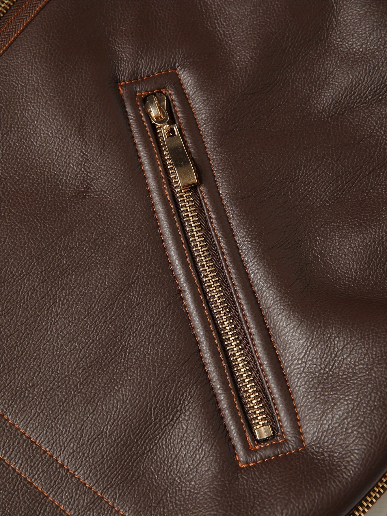 Refina tu guardarropa con una pieza que combina la autenticidad del cuero con el confort irresistible de un forro sherpa. Esta chaqueta de aviador modernizada ofrece protección notable contra el frío mientras irradia un estilo distintivo, elegante y masculino. Perfecta para quienes buscan una apariencia atemporal sin sacrificar la comodidad.