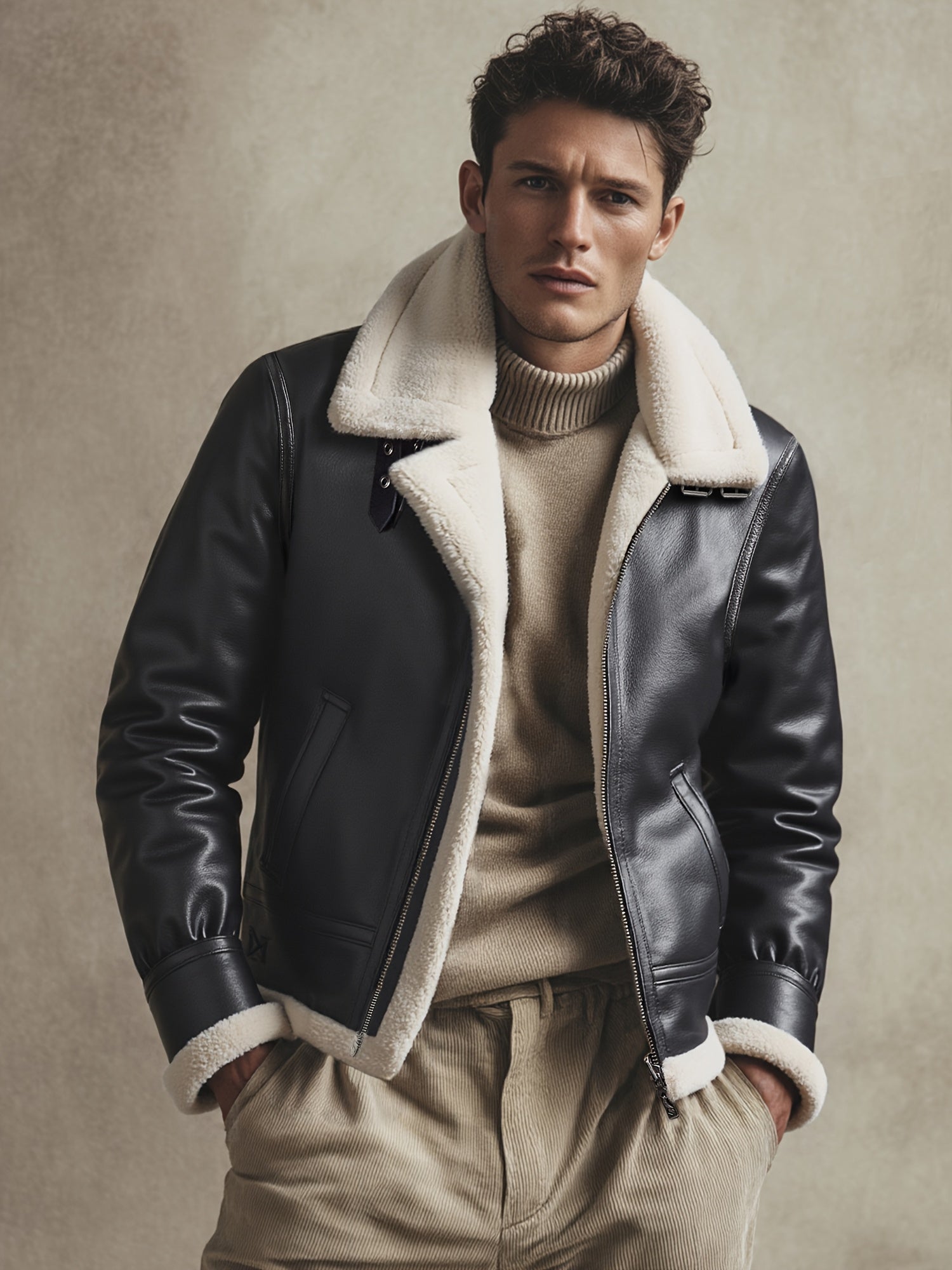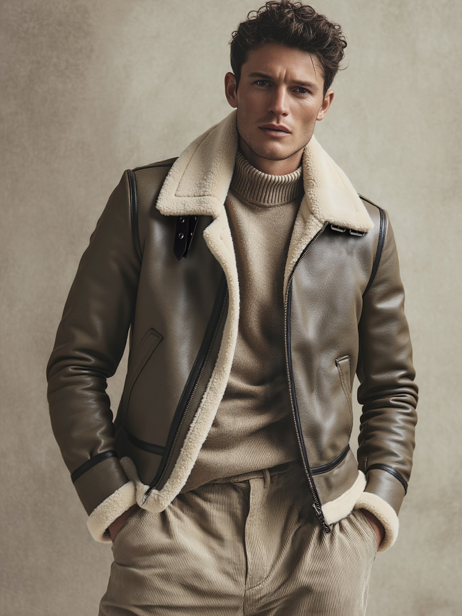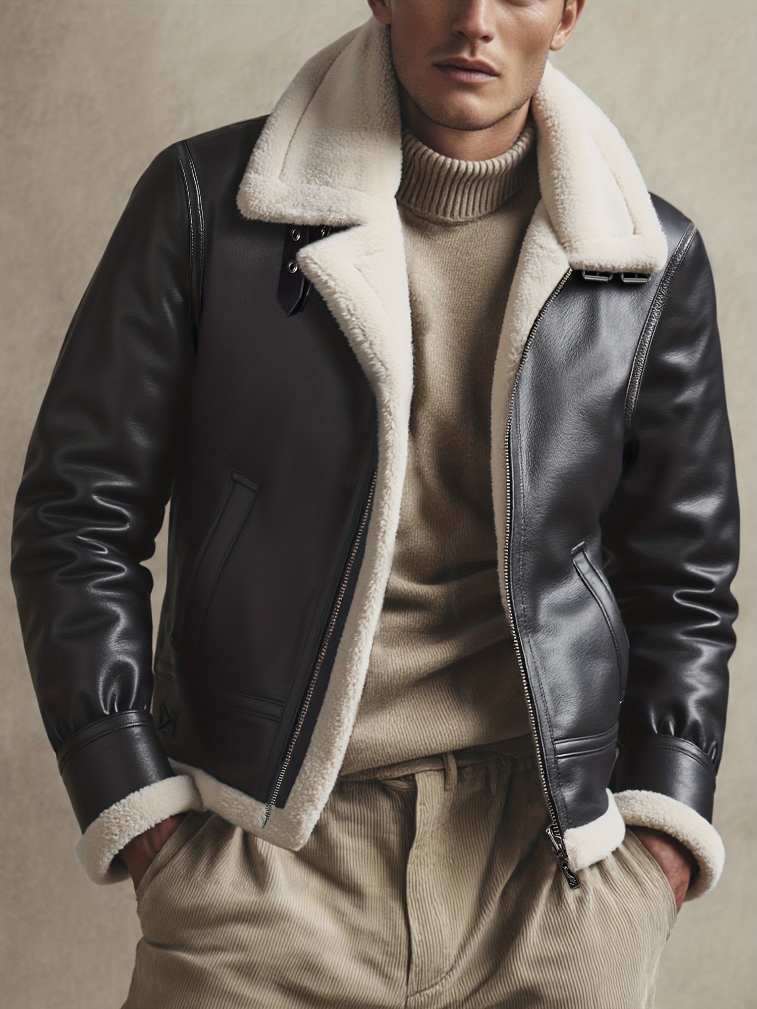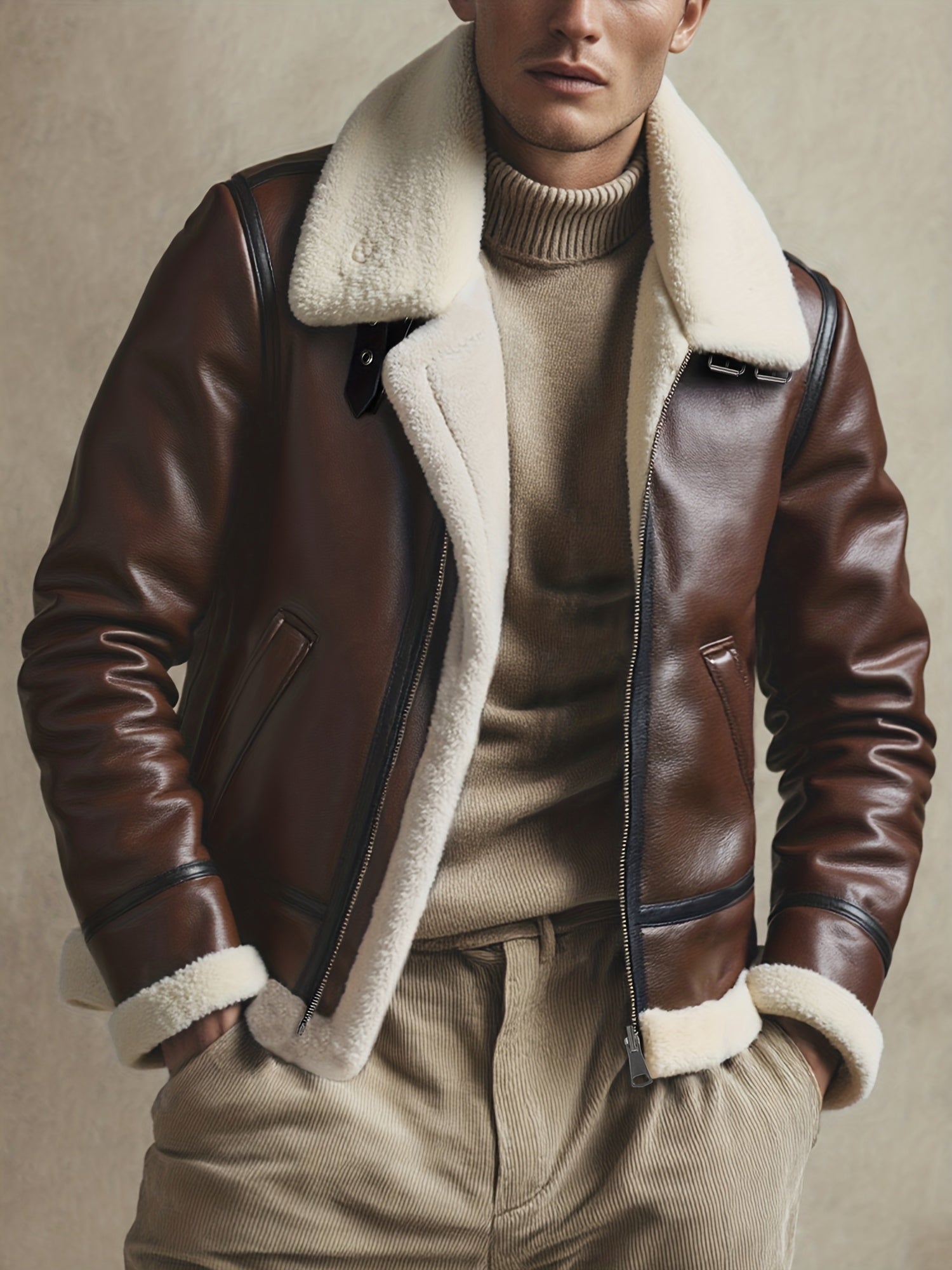 ✓ Estilo icónico – Reinterpretación de la estética aviador, cuero marrón profundo y cuello contrastante para una apariencia premium.